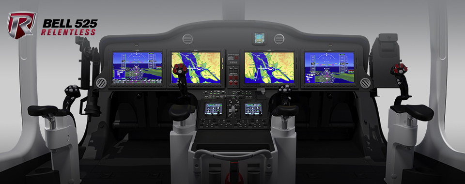 Le Bell 525 Relentless, avec son poste de pilotage ARC Horizon®, fournit une connaissance de la situation sans précédent grâce à son tableau de bord nouvelle avionique tactile intégrée GARMIN G5000H®. Les commandes de vol électriques entièrement numériques et assistées par les ordinateurs de contrôle de vol de BAE Systems permettent aux opérateurs d'effectuer des missions exigeantes dans presque tous les environnements.